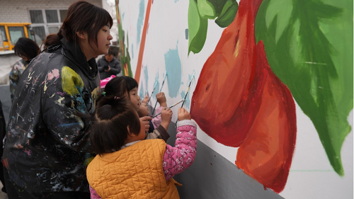 墻上的彩繪,悄悄重塑著村民對家鄉(xiāng)的認(rèn)同。參與墻繪的志愿者們沒有“單向輸出”審美,而是拉著村民一起動筆:把港澳幫扶的情誼畫進(jìn)田野,把哪吒的童趣融進(jìn)巷陌,把村里的紅薯、粉條這些土寶貝變成畫里的主角。墻繪不再是外人眼中的網(wǎng)紅裝飾,而是村民能對號入座的記憶:描過色的孩子會驕傲地指著墻面喊“這是我畫的”。當(dāng)家鄉(xiāng)的風(fēng)景、自己的故事被“掛”在墻上,村民對這片土地的感情,也從生于斯長于斯的習(xí)慣,變成了“我為它驕傲”的自豪。