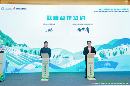 中國(guó)鄉(xiāng)村發(fā)展基金會(huì)副秘書長(zhǎng)丁亞冬、農(nóng)業(yè)農(nóng)村部南京農(nóng)業(yè)機(jī)械化研究所副所長(zhǎng)曹光喬,共同簽署鄉(xiāng)村振興戰(zhàn)略合作協(xié)議。雙方將圍繞丘陵山區(qū)現(xiàn)代化農(nóng)機(jī)裝備推廣應(yīng)用、專家技術(shù)服務(wù)、社會(huì)化服務(wù)主體培育等方面展開合作,為項(xiàng)目注入更強(qiáng)科技動(dòng)力,為欠發(fā)達(dá)地區(qū)的新農(nóng)機(jī)發(fā)展提供技術(shù)支持,并著力打造一批可復(fù)制、可推廣的丘陵山區(qū)農(nóng)機(jī)社會(huì)化服務(wù)案例。