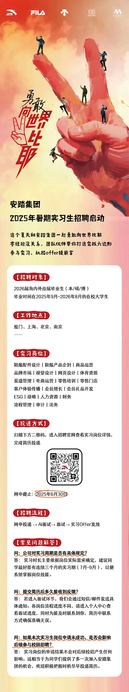 安踏集團(tuán)2025年暑期實習(xí)生招聘啟動