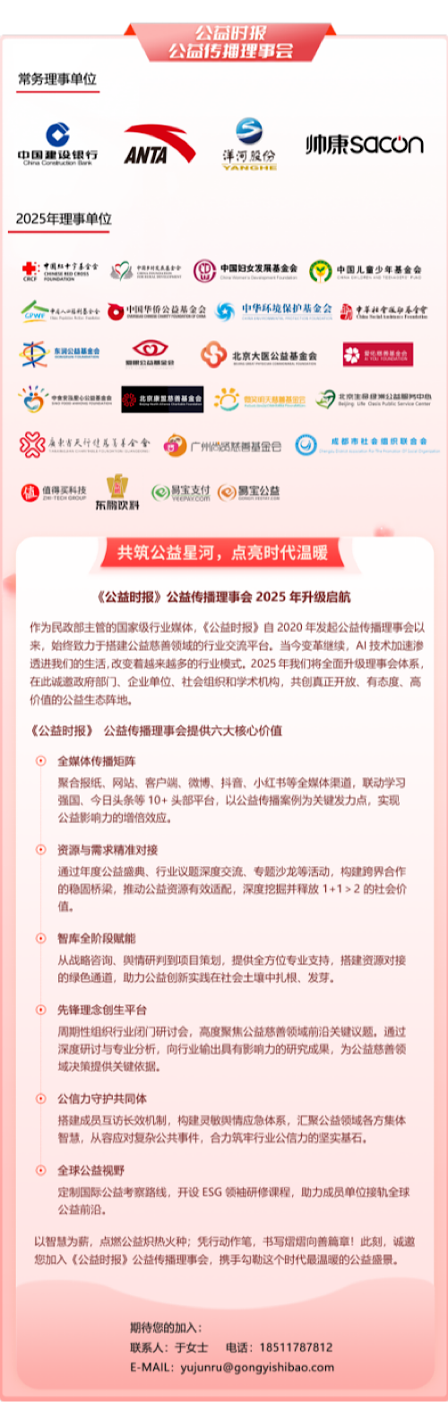 現(xiàn)場,《公益時報》定位于“觀察者”“記錄者”“連接者”,攜手首批二十余位來自基金會、企業(yè)、媒體的伙伴正式發(fā)起“公益守望計劃”2025.旨在與所有公益同行者并肩,共同構建更具活力、更可持續(xù)的公益慈善事業(yè)發(fā)展新生態(tài),開啟公益發(fā)展新篇章。