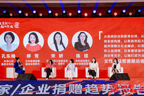 而“她力量”這個關鍵詞則由孔東梅與北京康盟慈善基金會理事長柳鶯、北京京妍公益基金會創(chuàng)始人宋妍、深圳美麗魔方健康投資集團董事長陳瓊共同分享。