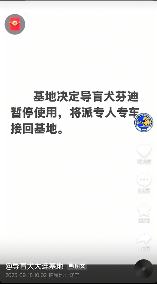 大連導(dǎo)盲犬訓(xùn)練基地抖音官方賬號發(fā)布