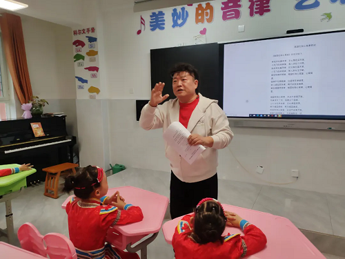 此次隨隊前來的國家大劇院藝術(shù)家金鄭建、胡越,在驚嘆于小小年紀(jì)的孩子們有如此藝術(shù)天賦之余,分別為學(xué)校的社團學(xué)生指導(dǎo)演唱《祖國在我心窩里》《盧溝謠》,并為他們上了一場生動的“藝術(shù)第一課”。