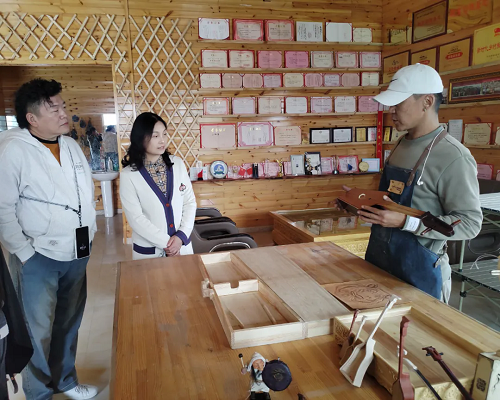 國家大劇院團隊走訪托布秀爾琴傳承基地在結(jié)合地域性文化需求方面,“藝術(shù)普及教室”的捐建地均帶有濃郁的民族特色,群眾對藝術(shù)種類的接受上存在明顯偏好。因此,國家大劇院與地方民族藝術(shù)團體精心配合,為當(dāng)?shù)匕傩辗瞰I(xiàn)高雅藝術(shù)與地方民族藝術(shù)深度結(jié)合的舞臺表演,并在每一站特別與當(dāng)?shù)氐?ldquo;非遺”民族藝術(shù)家深入互動,重視并協(xié)助維護當(dāng)?shù)貎?yōu)質(zhì)特色文化的傳承。