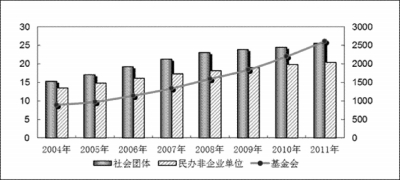| 近年我國(guó)社會(huì)組織發(fā)展數(shù)量 民政部門接收的社會(huì)捐贈(zèng) 注:圖中柱狀對(duì)應(yīng)左側(cè)數(shù)據(jù)軸,點(diǎn)線對(duì)應(yīng)右側(cè)數(shù)據(jù)軸 ■ 本報(bào)記者 張雪弢 日前,民政部發(fā)布《2011年社會(huì)服務(wù)發(fā)展統(tǒng)計(jì)公報(bào)》。公報(bào)顯示,2011年,全國(guó)社會(huì)服務(wù)事業(yè)費(fèi)支出3229.1億元,全年各地直接接收社會(huì)捐贈(zèng)款物495.0億元,救助生活無(wú)著流浪乞討未成年人17.9萬(wàn)人次。 全國(guó)共有社會(huì)服務(wù)業(yè)機(jī)構(gòu)129.8萬(wàn)個(gè) 截至2011年底,全國(guó)共有社會(huì)服務(wù)業(yè)機(jī)構(gòu)129.8萬(wàn)個(gè),比上年增長(zhǎng)2.3%,職工總數(shù)1129.8萬(wàn)人,固定資產(chǎn)總值為6989.8億元,比上年增加6.1%。社會(huì)服務(wù)業(yè)增加值2459.8億元,比上年增長(zhǎng)22.1%,占第三產(chǎn)業(yè)的比重1.2%。截至2011年底,全國(guó)通過(guò)社會(huì)工作師考試的13421人,通過(guò)助理社會(huì)工作師考試的40755人。 全國(guó)社會(huì)服務(wù)事業(yè)費(fèi)支出3229.1億元,比上年增長(zhǎng)19.7%,占國(guó)家財(cái)政支出比重為3%,與上年持平。中央財(cái)政共向各地轉(zhuǎn)移支付社會(huì)服務(wù)事業(yè)費(fèi)1808億元,比上年增長(zhǎng)34.7%,占社會(huì)服務(wù)事業(yè)費(fèi)比重56%,比上年增加了6.2個(gè)百分點(diǎn)。社會(huì)服務(wù)事業(yè)基本建設(shè)施工項(xiàng)目4533個(gè),全年完成投資總額218.5億元,比上年增長(zhǎng)19.4%。 全國(guó)共建立 慈善超市8802個(gè) 截至2011年底,全國(guó)共建立經(jīng)常性社會(huì)捐助工作站、點(diǎn)和慈善超市3.4萬(wàn)個(gè)(其中:慈善超市8802個(gè))。全年各地直接接收社會(huì)捐贈(zèng)款物495.0億元,其中:民政部門直接接收社會(huì)各界捐款96.6億元,捐贈(zèng)物資折款4.8億元,各類社會(huì)組織接收捐款393.6億元。 全年各地接收捐贈(zèng)衣被2918.5萬(wàn)件,其中:棉衣被1647.1萬(wàn)件。間接接收其他部門轉(zhuǎn)入的社會(huì)捐款3.8億元,衣被588.4萬(wàn)件,其中:棉衣被410.2萬(wàn)件,捐贈(zèng)物資折款2714.3萬(wàn)元。全年有1459.7萬(wàn)人次困難群眾受益。全年有950.2萬(wàn)人次在社會(huì)服務(wù)領(lǐng)域提供了9272.6萬(wàn)小時(shí)的志愿服務(wù)。 全國(guó)共有基金會(huì) 2614個(gè) 截至2011年底,全國(guó)共有社會(huì)組織46.2萬(wàn)個(gè),比上年增長(zhǎng)3.7%。其中,全國(guó)共有社會(huì)團(tuán)體25.5萬(wàn)個(gè),比上年增長(zhǎng)4.0%。全年共執(zhí)法檢查社會(huì)團(tuán)體890起,其中取締非法社會(huì)團(tuán)體12起,行政處罰878起。全國(guó)共有民辦非企業(yè)單位20.4萬(wàn)個(gè),比上年增長(zhǎng)3.1%。全年共執(zhí)法檢查民辦非企業(yè)1016起,其中取締非法民辦非企業(yè)9起,行政處罰1007起。 同時(shí),我國(guó)共有基金會(huì)2614個(gè),比上年增加414個(gè),增長(zhǎng)18.8%,其中:公募基金會(huì)1218個(gè),非公募基金會(huì)1370個(gè),境外基金代表機(jī)構(gòu)26個(gè)。民政部登記的基金會(huì)183個(gè)。公募基金會(huì)和非公募基金會(huì)共接收社會(huì)各界捐贈(zèng)219.7億元。全年共行政處罰基金會(huì)11起。 另?yè)?jù)統(tǒng)計(jì),截至2011年底,基層群眾自治組織共計(jì)67.9萬(wàn)個(gè),全年共有35.8萬(wàn)個(gè)村(居)委會(huì)完成選舉,參與選舉的村(居)民登記數(shù)為4.5億人,參與投票人數(shù)為3.6億人。 全國(guó)有流浪兒童 救助保護(hù)中心241個(gè) 截至2011年底,全國(guó)共有兒童福利機(jī)構(gòu)397個(gè),比上年增加62個(gè),床位6.0萬(wàn)張,比上年增長(zhǎng)20.0%。全國(guó)有流浪兒童救助保護(hù)中心241個(gè),床位0.8萬(wàn)張。全年救助生活無(wú)著流浪乞討未成年人17.9萬(wàn)人次。 民政部會(huì)同財(cái)政部下達(dá)25.2億元中央財(cái)政專項(xiàng)資金補(bǔ)助各地發(fā)放孤兒基本生活費(fèi)。截至2011年底,全國(guó)共有孤兒50.9萬(wàn)人,其中各類社會(huì)福利機(jī)構(gòu)收養(yǎng)兒童10.8萬(wàn)人,社會(huì)散居孤兒40.1萬(wàn)人。2011年全國(guó)辦理家庭收養(yǎng)登記31424件,其中:中國(guó)公民收養(yǎng)登記27579件,外國(guó)人收養(yǎng)登記3845件。 全國(guó)共有生活無(wú)著人員救助管理單位1788個(gè),床位7.9萬(wàn)張,其中救助管理站1547個(gè),床位7.1萬(wàn)張。全年救助城市生活無(wú)著的流浪乞討人員241.0萬(wàn)人次,其中在站救助220.5萬(wàn)人次,不在站救助20.5萬(wàn)人次。全國(guó)共有軍休軍供機(jī)構(gòu)2287個(gè)。其中軍休管理單位1960個(gè),可提供休養(yǎng)戶數(shù)16.0萬(wàn)戶;軍供站327個(gè),床位3.8萬(wàn)張。 |