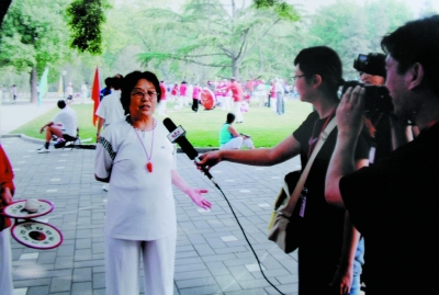 在迎奧運(yùn)的活動中,劉淑敏老人參加了英語學(xué)習(xí)班,編排并出演了英語情景劇,在北京電視臺錄像播出,有電視臺專門來采訪她