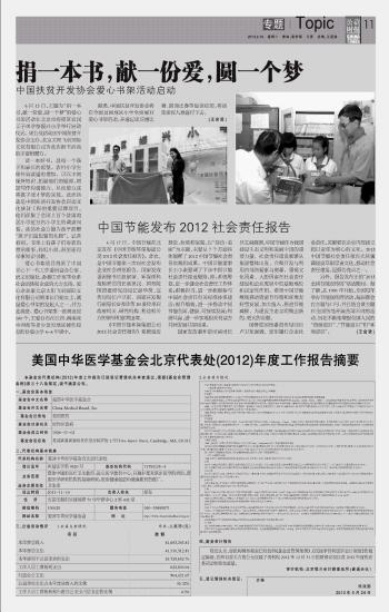 美國中華醫(yī)學基金會北京代表處(2012)年度工作報告摘要