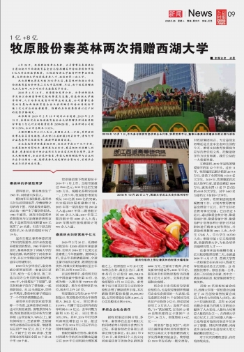 牧原股份秦英林兩次捐贈西湖大學(xué)