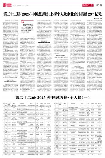 第二十二屆(2025)中國慈善榜:上榜個人及企業(yè)合計捐贈297億元