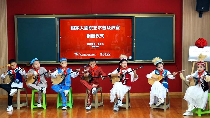 國家大劇院藝術(shù)普及教室,采用“線下空間改造+線上資源賦能”的立體幫扶模式,以“小空間”激活“大文化”,既是首都連接邊遠(yuǎn)地區(qū)的“美育橋梁”,也是國家大劇院在邊遠(yuǎn)地區(qū)的“美育陣地”。 ■ 本報記者 高文興 在祖國邊陲,新疆的西北端,坐落著這樣一個與哈薩克斯坦共和國接壤的小城——博爾塔拉蒙古自治州溫泉縣。這片僅有7萬多人口的靜謐之地,其三面被高聳入云的連綿雪山所包圍,像是被巨人藏入懷抱的一顆稀世之珍,驚艷動人,卻隱秘地不為外界察覺。 9月中旬的晚上,溫泉縣已倍感寒意,至21時,漫長的白日卻才舍得向這里做最后告別。然而,一片雷鳴般的掌聲和歡呼又陡然劃破這天山腳下的寧靜,一場國家級頂尖水準(zhǔn)的歌舞盛宴此時拉開帷幕——在新疆維吾爾自治區(qū)成立70周年之際,國家大劇院藝術(shù)發(fā)展基金會為溫泉縣帶來的藝術(shù)火種,正烘托著這顆邊陲明珠釋放其更加璀璨的光芒。 “藝術(shù)普及教室”落地溫泉 助力多民族文化永葆活力 溫泉縣城位于海拔1700米的博格達(dá)爾山的山腳下,博格達(dá)爾在蒙語中意為“神山的背后”。雖然地處遙遠(yuǎn),但千年來,在這座神山的注視下,漢族、蒙古族、哈薩克族、維吾爾族等多民族共同譜寫出了一曲曲世代傳唱的動人歌謠,當(dāng)?shù)氐拿晒抛宥陶{(diào)更從大山背后傳出,成為了國家級的“非遺”代表性項目。 9月17日,國家大劇院藝術(shù)發(fā)展基金會攜國家大劇院歌唱家遠(yuǎn)赴溫泉縣,與溫泉縣烏蘭牧騎展開交流,為草原輕騎兵捐贈樂器,并與他們聯(lián)手為當(dāng)?shù)匕傩辗瞰I(xiàn)了兩臺高水準(zhǔn)的演出,將最優(yōu)質(zhì)的文化資源送抵祖國的邊境線。 于是,便有了文章開頭的一幕——千余名當(dāng)?shù)匕傩赵谝归g涌進(jìn)溫泉縣文化中心劇場,他們的熱情激發(fā)出了演員們的高水準(zhǔn)表演,將晚會推向一個又一個高潮。 巴音巴特已經(jīng)是溫泉縣烏蘭牧騎第五任隊長,當(dāng)天,他全程參與了和大劇院歌唱家的交流以及同臺演出,他在演出后接受《公益時報》記者采訪時表示,在過去,烏蘭牧騎的創(chuàng)作和演出條件艱苦,經(jīng)常“以天為幕布,以地為舞臺”,這次國家大劇院帶來的樂器有鋼琴、二胡、三弦等,“豐富了我們的樂器品種,讓演員的創(chuàng)作、表演和舞蹈編曲更上一個臺階。國家大劇院藝術(shù)家與基層藝術(shù)團(tuán)隊的深入交流,也讓我們受益匪淺,他們千里迢迢的到來讓我們深切感受到了來自祖國的溫暖?!?br> 溫泉縣烏蘭牧騎生生不息的傳承基因,必然與當(dāng)?shù)孛耖g世代熏陶和培養(yǎng)密不可分,而小學(xué)基礎(chǔ)教育則是將藝術(shù)種子進(jìn)行集中播撒的關(guān)鍵階段。鑒于此,國家大劇院團(tuán)隊本次新疆溫泉之行的“重頭戲”,則是為溫泉縣城鎮(zhèn)小學(xué)精心打造一間“藝術(shù)普及教室”。 據(jù)了解,溫泉縣城鎮(zhèn)小學(xué)是當(dāng)?shù)匾蛔兄凭脷v史和美育教育傳統(tǒng)的學(xué)校,目前在校學(xué)生1052名,其中90%為少數(shù)民族。校長王麗娜表示,學(xué)校配備了6間音樂教室和4名音樂教師,基本滿足教學(xué)需求,但面對孩子們更高的藝術(shù)渴求,在樂器等基礎(chǔ)設(shè)備上還難以滿足。 而新落成的“藝術(shù)普及教室”中,教學(xué)一體機、音響、鋼琴、合唱臺等先進(jìn)硬件設(shè)施一應(yīng)俱全,師生們還可以通過線上課堂來獲取更多的教材和音視頻。9月18日上午,在“藝術(shù)普及教室”捐贈儀式過后,城鎮(zhèn)小學(xué)的學(xué)生們表演了蒙古舞蹈《吉祥的筷子》、蒙古短調(diào)《察哈爾八旗》、維吾爾族舞蹈《快樂的童年》、冬不拉合奏《我的伙伴》、鋼琴演奏《噴泉》等精彩節(jié)目,展現(xiàn)了多民族文化的交融與活力。 此次隨隊前來的國家大劇院藝術(shù)家金鄭建、胡越,在驚嘆于小小年紀(jì)的孩子們有如此藝術(shù)天賦之余,分別為學(xué)校的社團(tuán)學(xué)生指導(dǎo)演唱《祖國在我心窩里》《盧溝謠》,并為他們上了一場生動的“藝術(shù)第一課”。 看到孩子們在藝術(shù)家的啟發(fā)下被激發(fā)出的求知欲和表現(xiàn)力,校長王麗娜感慨地說道:“其實不是我們的孩子不行,而是我們原來缺少這樣高水平的師資。通過初期課程和藝術(shù)家的指導(dǎo),我們的孩子進(jìn)步很快,對發(fā)聲技巧、節(jié)奏把控和個人展示都有很大的提升。我們非常感謝,希望有更多這樣高水平的專家來到我們這個邊陲小城,為更多渴望通往藝術(shù)殿堂的孩子提供指導(dǎo)?!?br> 國家大劇院創(chuàng)公益新舉 立體扶持鄉(xiāng)村美育陣地 而此次掛牌落成的“藝術(shù)普及教室”已是國家大劇院藝術(shù)發(fā)展基金會在全國打造的第五間教室。 據(jù)了解,國家大劇院藝術(shù)發(fā)展基金會成立于2022年年底,基金會以“資助文化藝術(shù)公益項目”為主,圍繞國家大劇院“人民性、藝術(shù)性、國際性”三項宗旨,構(gòu)建了全民美育、藝術(shù)資助和藝術(shù)交流三大項目體系。 “藝術(shù)普及教室”是2024年基金會創(chuàng)新開展的公益項目之一。當(dāng)年11月,基金會首站深入大興安嶺腹地的內(nèi)蒙古鄂倫春自治旗,為這一鄂倫春族的主要聚居地打造了兩間“藝術(shù)普及教室”,也為當(dāng)?shù)氐臑跆m牧