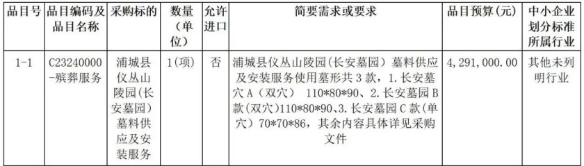 采購包1(浦城縣儀叢山陵園(長安墓園)墓料供應及安裝服務項目):