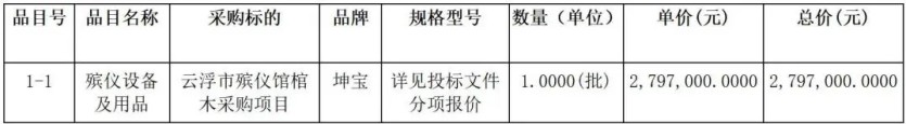 殯葬設備用品招(中)標信息一周公告(八十二)