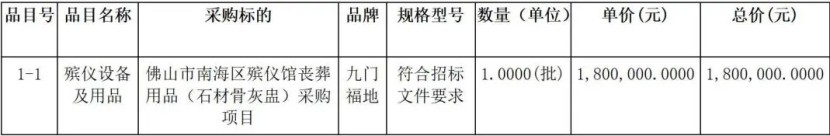 合同包1(佛山市南海區(qū)殯儀館喪葬用品(石材骨灰盅)采購項目):